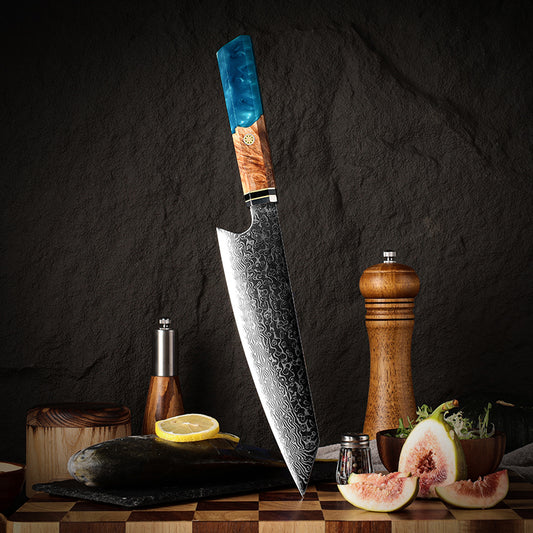 Damastmesser mit Stabilisiertes Holz+Harz-Griff